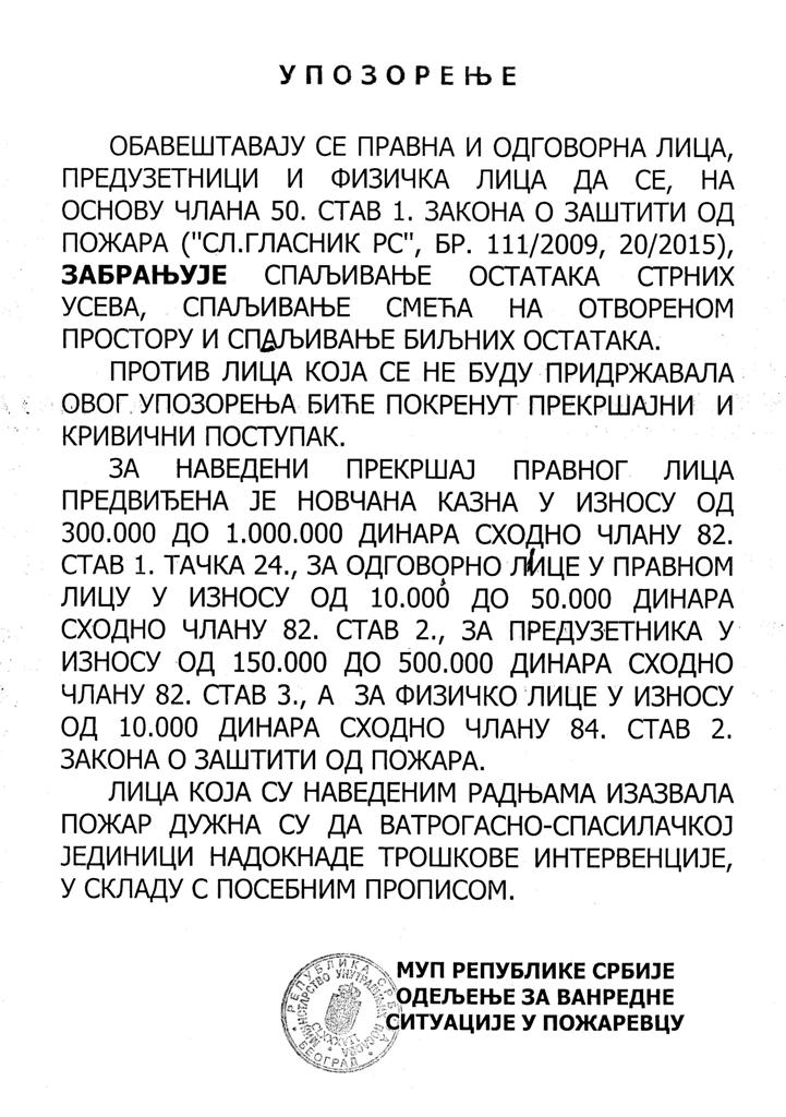 ЈАВНО ОБАВЕШТЕЊЕ